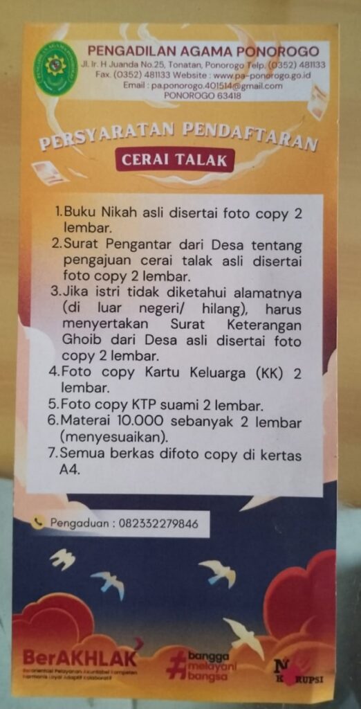 - Surat pengantar dari desa terkait pengajuan cerai talak + fotokopi 2 lembar